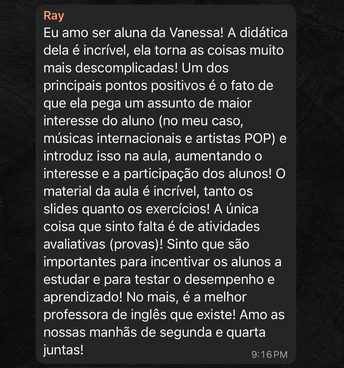 Tutora de inglês com Inteligência Artificial, criada com a metodologia da Teacher Vanessa. Disponível 24h por dia, 7 dias por semana.